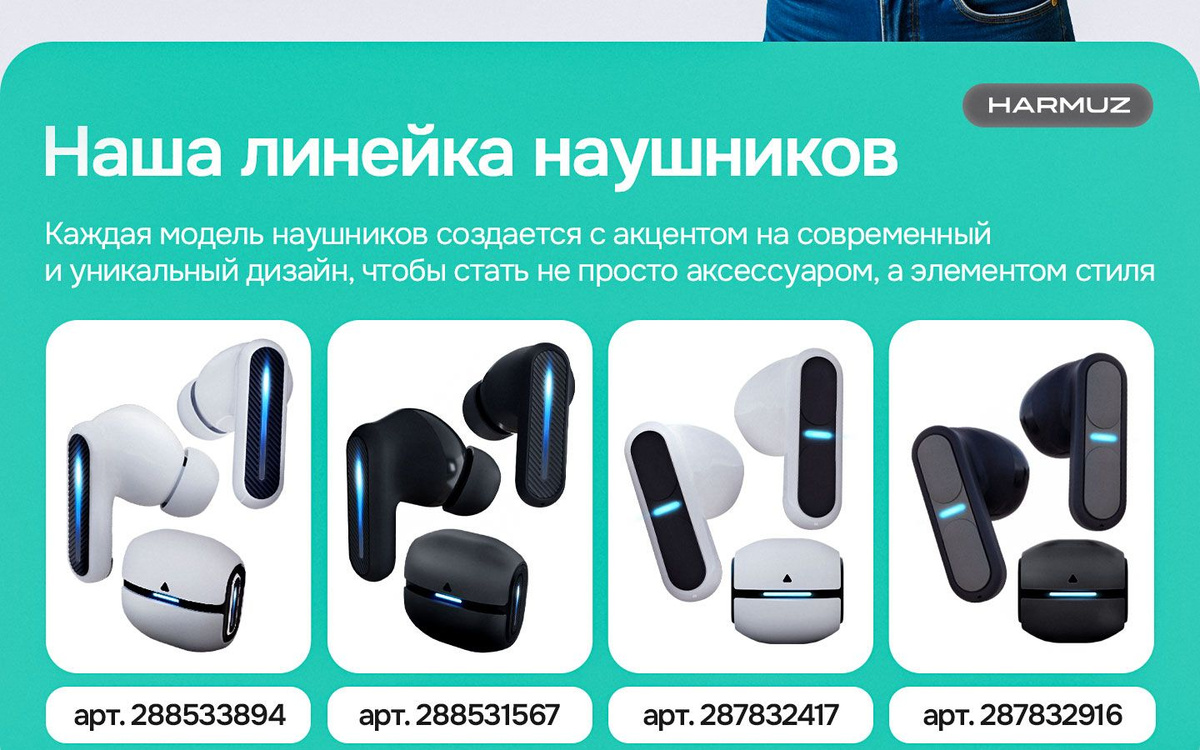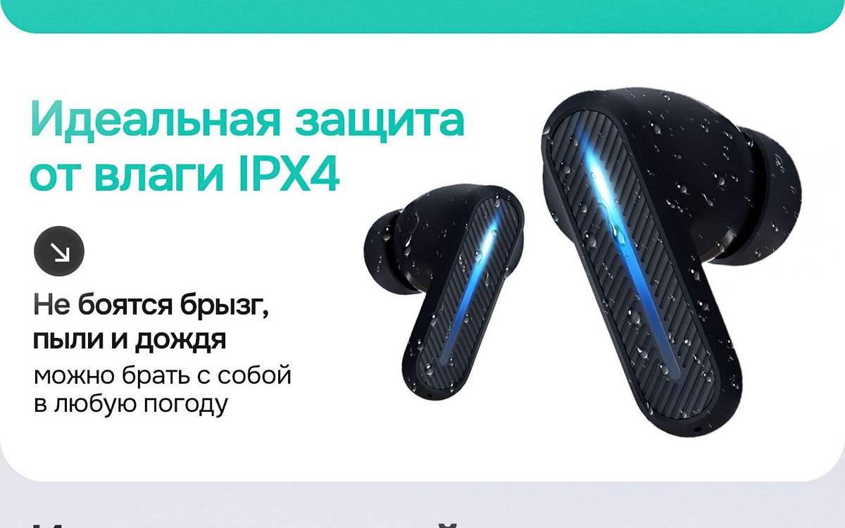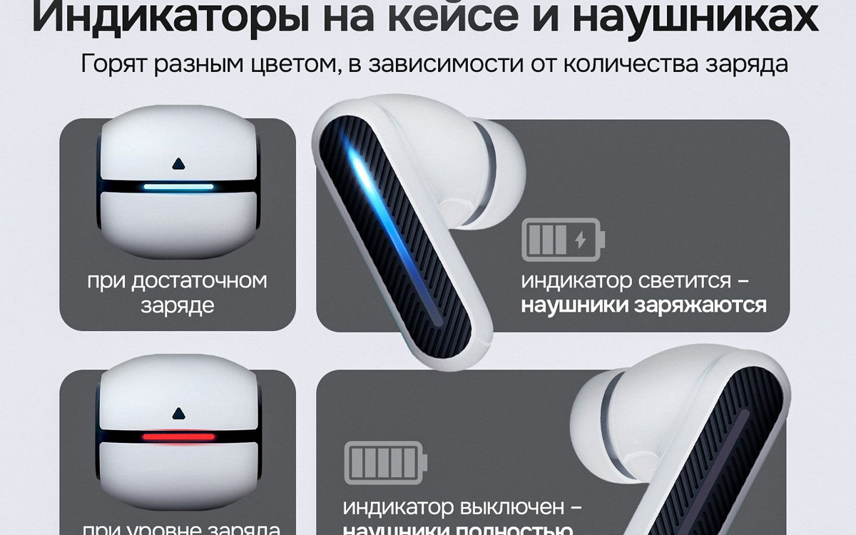 Упаковка, Кейс, Наушники беспроводные, Зарядное устройство, кабель USB-TYPE C, сменные амбушюры S,M,L размеров, Инструкция, Гарантийный талон