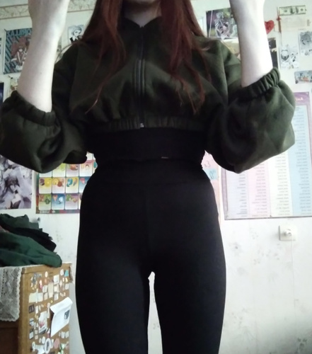 мой рост 175 и при движении руками кофта закатывается наверх вместе с рукавами, а в растегнутом варианте, за счет объёмного капюшона, который падает назад, кофта становится еще короче. на девочках пониже, наверное, будет сидеть лучше. в целом, неплохо, тёплая, ходила в ней в +10 и не замёрзла.