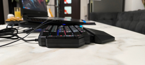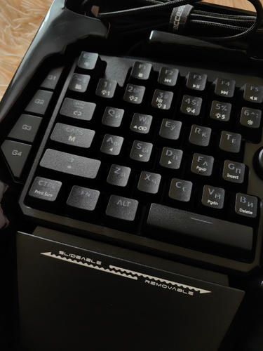 Корпус спроектирован таким образом, что обеспечивает легкий и быстрый доступ ко всем необходимым клавишам, а подвижная съемная подставка под запястье минимизирует усталость даже при очень долгом использовании.