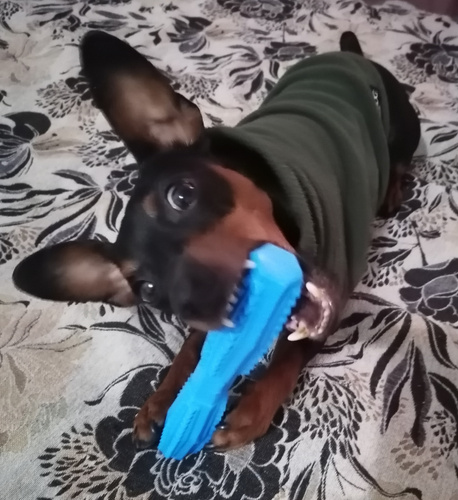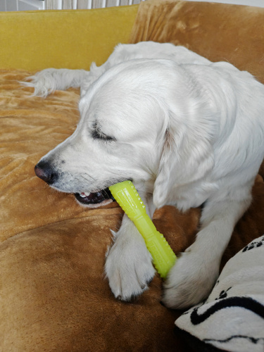 Массаж десен у вашего любимца также будет происходить естественным образом благодаря текстуре игрушки. Полезная для зубов структура палки способствует очищению зубного налета во время игры. Это заботится о гигиене рота вашей собаки без дополнительных усилий с вашей стороны.