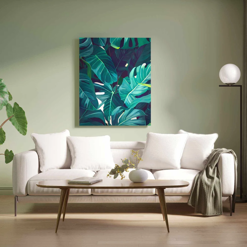 Яркие листья играют своими оттенками, раскрашивая белое полотно. Цветы распускаются как нежное приветствие утру, наполняя комнату свежестью и ароматом весны.