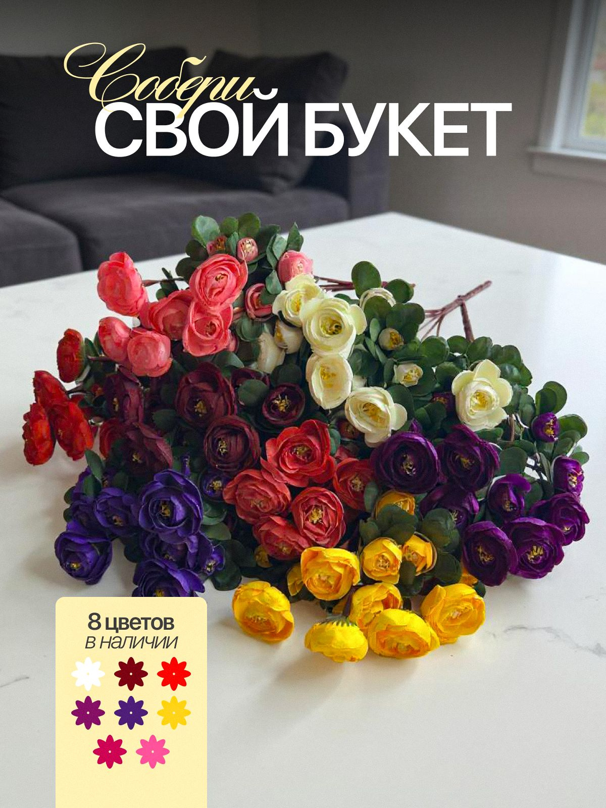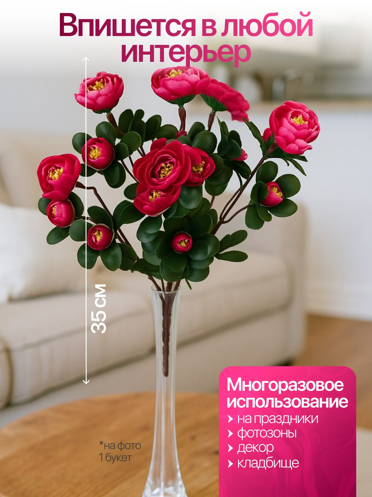 ЗаголовокИскусственные цветы - это не только удобство, но и возможность придать вашему пространству индивидуальность и стиль. Придумайте оригинальное оформление с помощью этих ярких и эффектных искусственных роз, которые привнесут изысканность и шарм в любой уголок вашего дома. Они также могут служить замечательным аксессуаром для витрины или в качестве декора при проведении мероприятий.