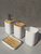 Набор сделан из экологически чистого и прочного пластика, бамбука и хрома. Бамбук придает аксессуарам натуральность и природную красоту. Бамбук имеет специальное покрытия, которое защищает его от потемнения и вздутия.