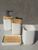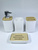 Этот комплект включает в себя все необходимое для удобства и красоты вашей ванной комнаты. В нем есть стакан для зубных щеток с перегородкой, стакан для воды, мыльница и дозатор для жидкого мыла. Все аксессуары выполнены в белом цвете, что придаст интерьеру вашей ванной элегантный вид. Дозатор для жидкого мыла легко использовать одной рукой. Мыльница имеет вставку из бамбука, которая отводит влагу и не дает размокать мылу. Стакан для зубных щеток имеет функциональную перегородку, чтобы предметы личной гигиены располагались отдельно. Стакан для воды приятный на ощупь, края тщательно отполированы.