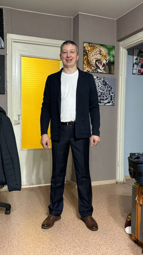 Мужской кардиган тонкой фактурной вязки с V-образным вырезом станет универсальным элементом гардероба, способным преобразить как строгий офисный образ, так и повседневный кэжуал-лук. Полуприлегающий силуэт подчеркивает мужскую фигуру, сохраняя при этом комфорт ношения, а отложной воротник с лацканами добавляет нотку элегантности, делая эту модель идеальной для многослойных сочетаний. Длинный рукав обеспечивает необходимую свободу движений, а застёжка на пуговицах позволяет регулировать степень открытости в зависимости от ситуации. Фактурная вязка придаёт кардигану особый шарм, создавая интересную игру света и тени на поверхности материала. Накладные карманы не только выполняют практическую функцию, но и добавляют образу лёгкую неформальность, характерную для современных стильных решений. Представленный в бежевом, синем, сером и чёрном цветах, этот кардиган легко впишется в существующий гардероб мужчин и мальчиков-подростков, предлагая широкие возможности для создания разнообразных образов. Бренд Zolla предлагает обширную коллекцию вязаных и трикотажных моделей, где каждый найдёт вариант по своему вкусу. В ассортименте представлены красивые повседневные и классические кардиганы, включая тонкие модели под джинсы, деловые варианты для офиса и школы, а также модные молодёжные накидки на застёжке на пуговицах. Особого внимания заслуживают однотонные решения, которые станут базой для создания стильных осенних и зимних образов. Этот кардиган тонкой вязки — идеальный выбор для тех, кто ценит комфорт без ущерба для стиля. Его универсальность позволяет носить модель как самостоятельный элемент или как часть многослойного ансамбля. Большие размеры делают кардиган доступным для разных типов фигур, сохраняя при этом чёткость линий и аккуратность силуэта. Независимо от того, создаёте ли вы образ для университета, офиса или повседневного выхода, эта модель станет достойным дополнением вашего гардероба. Размер на модели: M. Рост модели: 190 см. ОГ-ОТ-ОБ: 100-78-100 см.