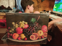 Холст, подрамник, лаковое покрытие, крепеж, малярная лента, стрейч пленка, упаковка