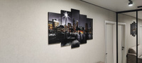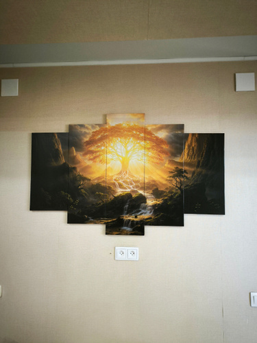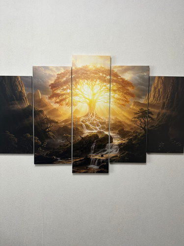 Общий размер всей композиции составляет 80×125 см. Это точные габариты картины при размещении модулей вплотную друг к другу, как и предусмотрено дизайном. Конкретные размеры полотен: 25×52 см, 25×66 см, 25×80 см, 25×66 см и 25×52 см. Обратите внимание: некоторые продавцы указывают завышенные размеры — например, 80×140 см — искусственно прибавляя вымышленные зазоры между частями. На деле такие зазоры не увеличивают реальную ширину картины. Мы указываем честные и точные размеры, чтобы вы точно представляли, как изделие будет выглядеть на вашей стене без маркетинговых уловок. Вы получаете именно то, что видите — качественную картину, продуманную до сантиметра.