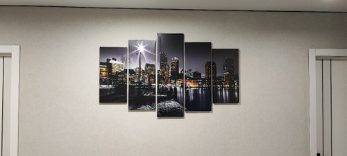 Изображение напечатано на прочном синтетическом холсте методом высокоточной фотопечати. Краски яркие, насыщенные, устойчивы к выцветанию, не тускнеют со временем. Каждый модуль — это самостоятельный элемент, натянутый вручную на прочный подрамник из МДФ. Это делает всю конструкцию лёгкой, долговечной и удобной в установке. Поверхность холста обладает приятной матовой текстурой, которая не даёт бликов при освещении и придаёт картине благородный внешний вид. Задняя часть оснащена металлическими подвесами — картина готова к размещению на стене сразу после покупки.