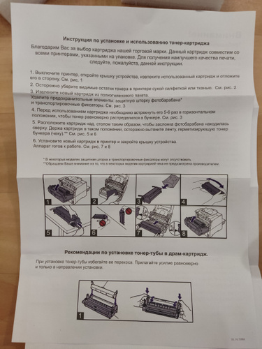 ВАЖНО: Производитель имеет право, не уведомляя заказчика, вносить изменения в конструкцию и комплектацию картриджа, без ухудшения его потребительских свойств.