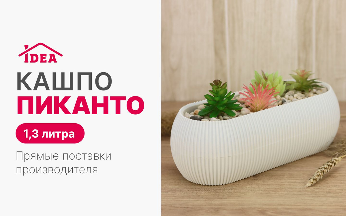 Кашпо ПИКАНТО сочетает в себе функциональность, эстетику и удобство. Кашпо идеально подходит для растений вроде кактусов или суккулентов. Поверхность кашпо выполнена вертикальными линиями. Эффектная фактура создаёт красивые блики на поверхности, впечатляет, увлекает и завораживает. Кашпо послужит прекрасным декоративным аксессуаром, который выгодно подчеркнёт индивидуальность. Изящные формы и природные оттенки подчеркнут красоту цветка. Является неповторимой деталью способной украсить и оживить интерьер любого дома. Кашпо не только функциональные, но и невероятно стильные. Оно обеспечит правильный уход за Вашими цветами. Кашпо состоит из двух частей: корпуса и поддона. Который крепиться на защёлки и используется для сбора лишней воды. Материал устойчив к солнечному свету, низким температурам и механическим повреждениям.