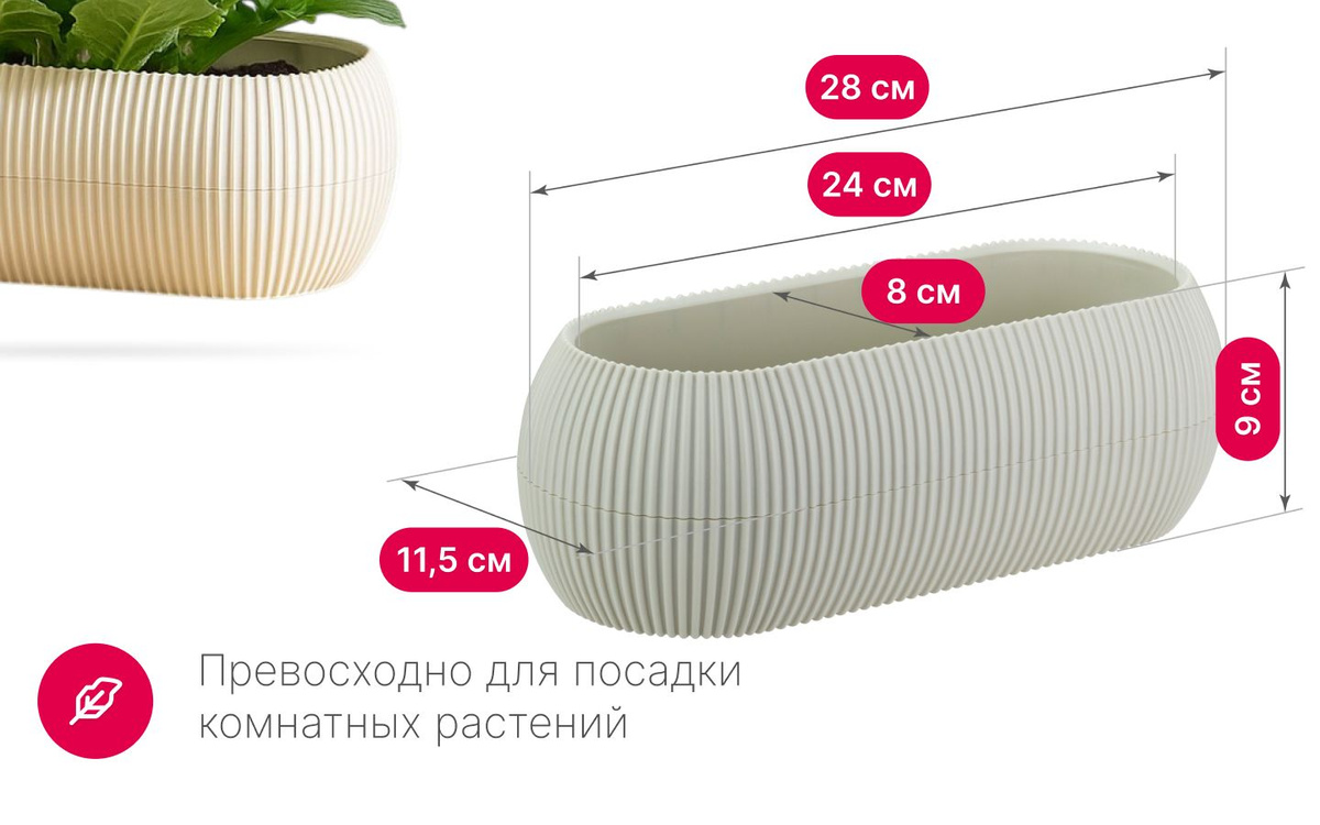 Добрый день, Мария! Ширина у кашпо 28см, глубина 11,5см. высота 9см. С уважением, производитель IDEA.