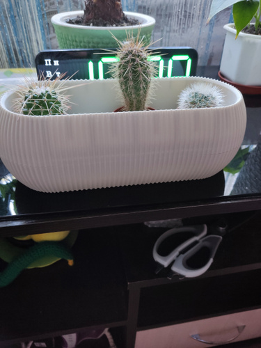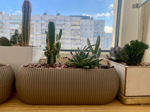Отличное кашпо , выбрала именно его из большого количества, именно такой формы компактной , можно поставить в любое место и поместилось 4 моих кактусика
