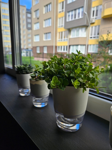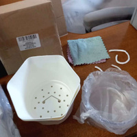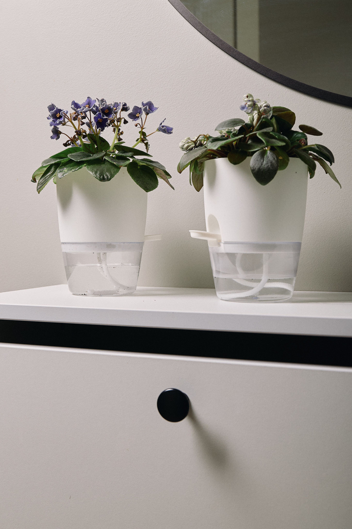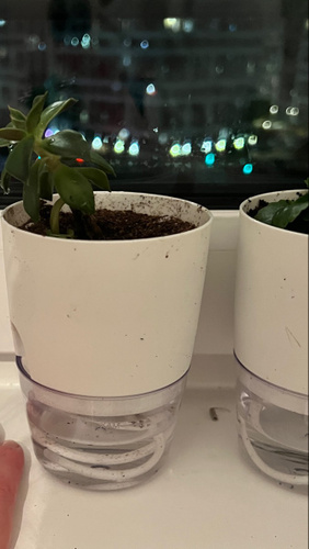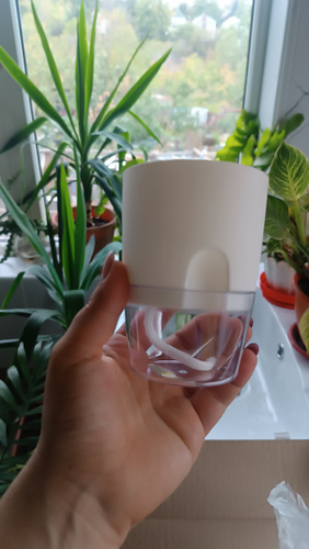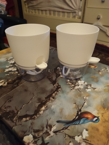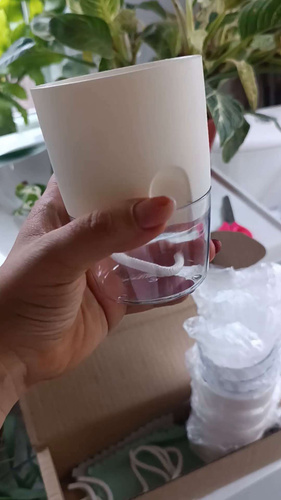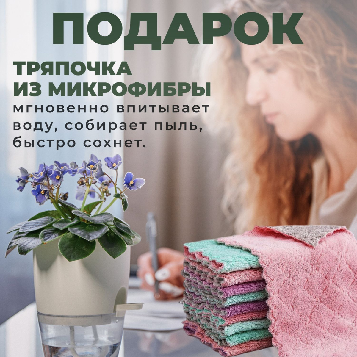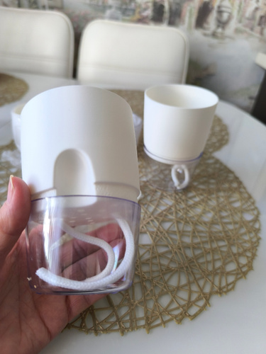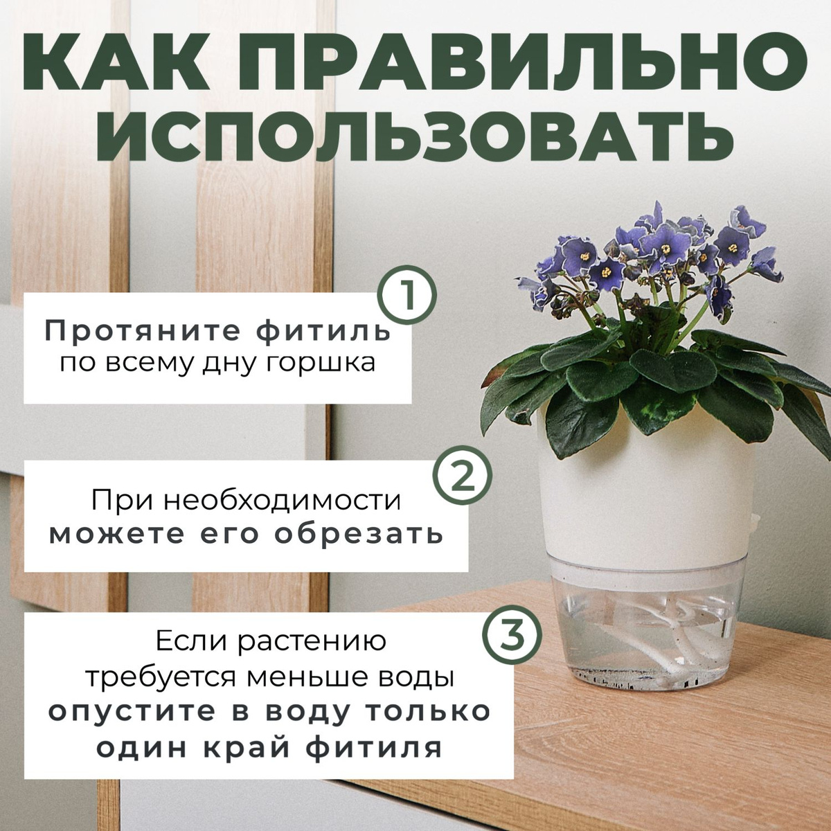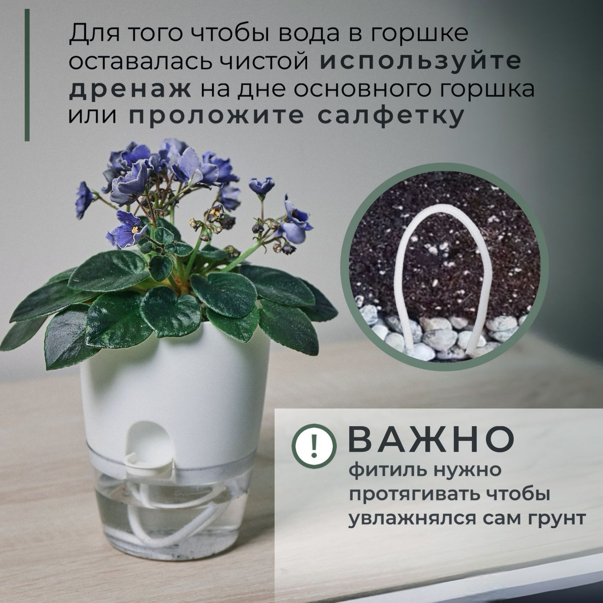 пластиковый белый горшочек - 2 шт пластиковый прозрачный поддон - 2 шт нитка для автополива - 2 шт язычок пластиковый для полива - 2 шт подарок тряпка из микрофибры - 1 шт