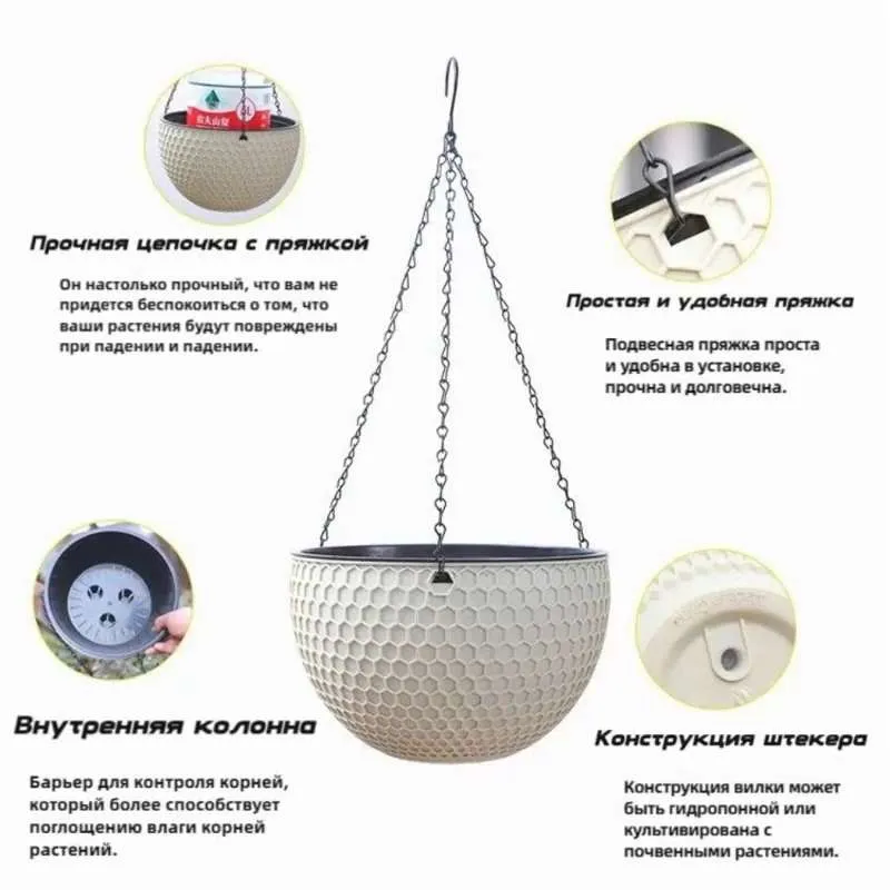 Комплектация 3 кашпо 3 поддон 3 пробка 3 держатель цепочками
