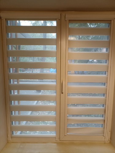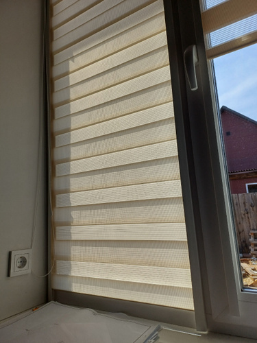 Заказываю второй раз, всё супер. Главное правильно подобрать размер, по инструкции. Учитывайте что высота изделия это направляющие + короб. Я это не учёл и мне чуть чуть не хватило направляющих с права, получилось в притык. В остальном всё хорошо. Легко устанавливается. Днём немного темновато, свет пропускает на 50%. Живём на первом этаже и сторона не солнечная. Рекомендую 👍