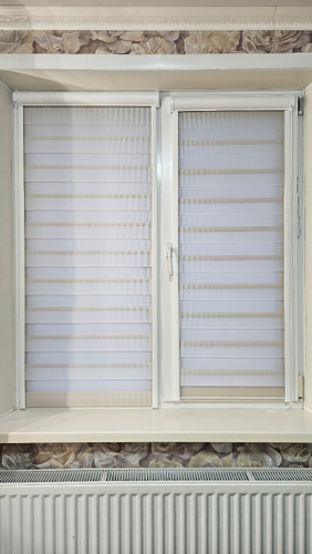 Кассетные рулонные шторы ДЕНЬ НОЧЬ ширина 78, высота 140 см бежевые левое управление, УНИ 2 жалюзи на #1