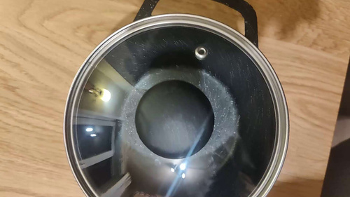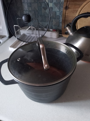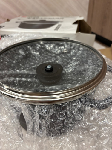 Кастрюля комплектуется крышкой из жаростойкого стекла с ободом из высококачественной нержавеющей стали.