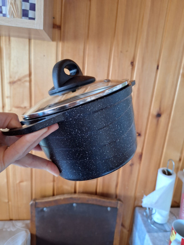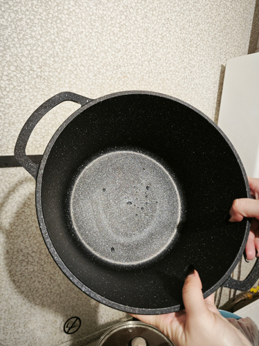 Качественное антипригарное покрытие с эффектом натурального камня «Черный гранит» позволяет избежать пригорания продуктов даже без использования масла. Покрытие на водно-кремниевой основе не содержит PFOA (перфтороктановую кислоту), безопасно для контакта с пищевыми продуктами, а также в производстве и для окружающей среды.