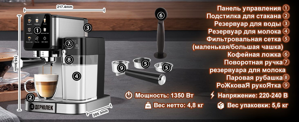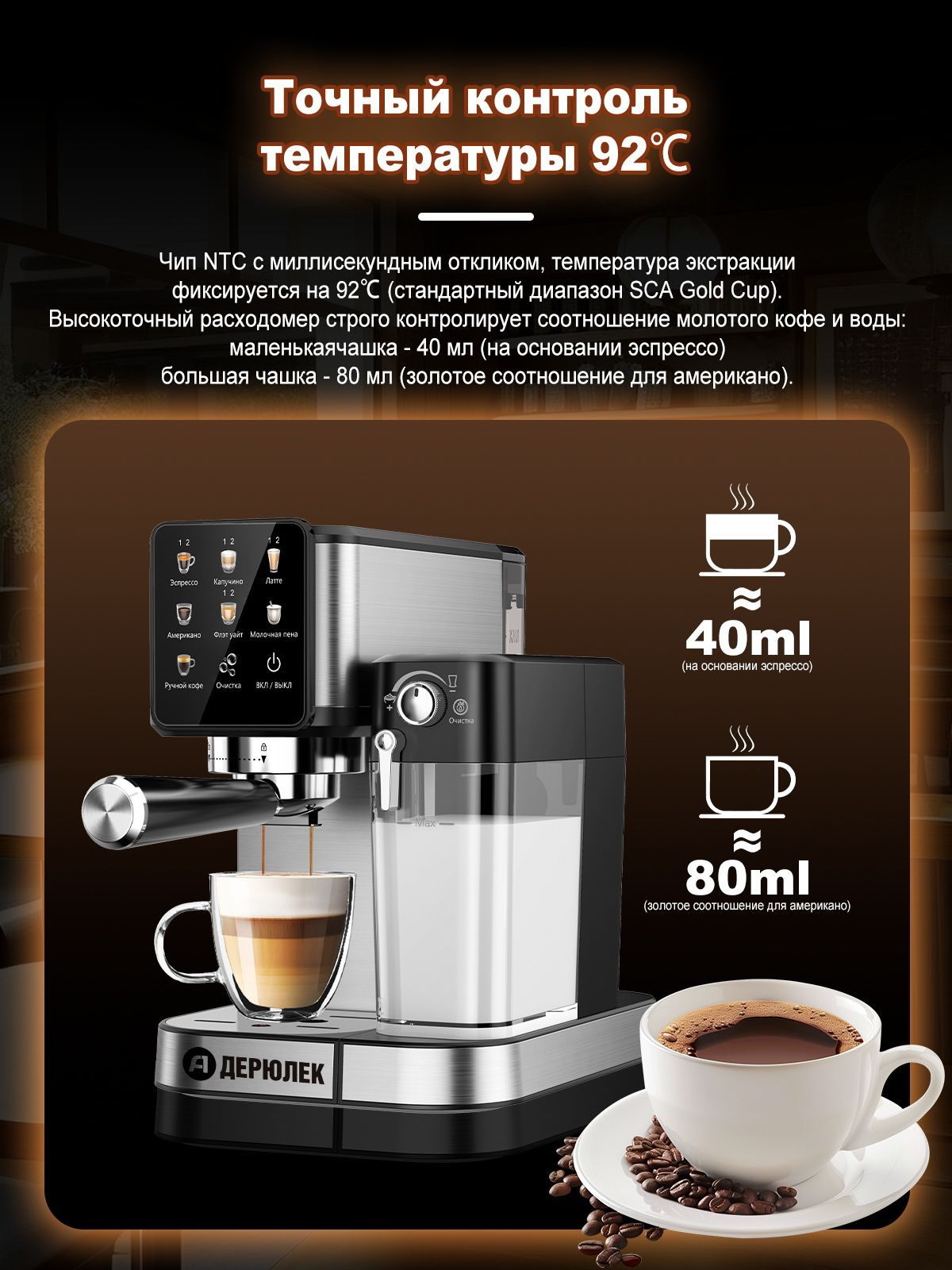 ⚡Кофемашина автоматическая Ддерюлек K082,1350 Вт,20 Бар5-B-1 Эспрессо, капучино, латте, американо, флет-уайт, молочная взбитое молоко, пуровер
