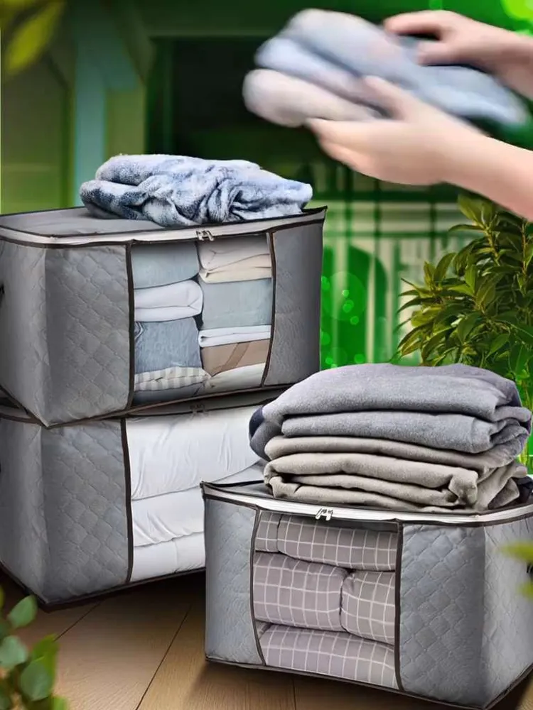 Органайзер для хранения вещей/ Коробка для хранения/ Кофр для хранения вещей/ Ящик для хранения одежды/ Контейнер для хранения вещей/ Короб для хранения одежды/ Кофр для хранения вещей на молнии- 3 штуки