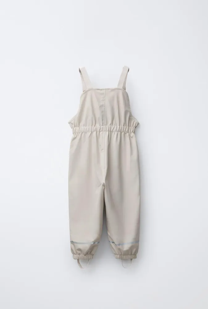Гладкий воротник, регулируемые лямки с пряжками-клипсами спереди. Эластичный пояс. Эластичные вставки на штанинах и светоотражающая лента. Внутренняя часть на подкладке из высококачественного флиса. Узорчатый принт.