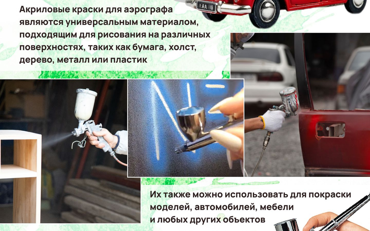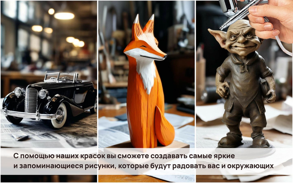 Позвольте себе полностью раскрыть свое творчество и создавать невероятные произведения искусства с помощью наших акриловых красок по для аэрографа. Будьте уверены, что каждая ваша работа будет настоящим произведением искусства, которое привлечет восхищение окружающих.