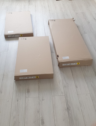 пришло в трех коробках. коробка с повреждениями, но внутри упаковано отлично. некоторые детали с повреждениями. так же некоторые царапины заклеены, видимо экономят на отбраковке. боковая стенка с трещиной на внешней стороне, но возвращать не стал, так как у меня она к стенке. так как было внутри хорошо упаковано, явно повредили не при транспортировке... Читать полностью