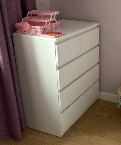 Отличный комод, высокий и вместительный. Сборщик мебели сказал, что очень хорошего качества с качественной фурнитурой.