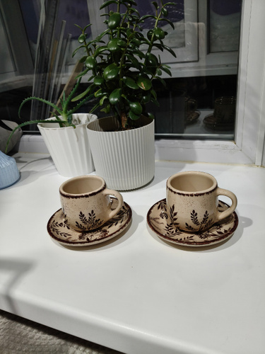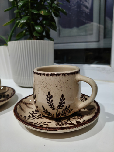 ✅ Жаропрочная керамика — посуда долго сохраняет тепло вашего любимого напитка, позволяя наслаждаться каждым глотком. ✅ Ручная роспись — каждый экземпляр уникален: растительные мотивы, нанесённые вручную, делают сервиз особенным. ✅ Эргономичный дизайн — высота кружек (8,5 см) и диаметр (8,5 см) обеспечивают удобство использования, а компактные размеры (ширина — 12 см) позволяют разместить сервиз даже на небольшой кухне. ✅ Экологичность и безопасность — керамика не вступает в реакцию с напитками, сохраняя их натуральный вкус. ✅ Стиль и гармония — лаконичный дизайн с природными мотивами впишется в любой интерьер: от классики до современного стиля. ✅ Российское производство — гарантия качества и долговечности от «Псковского Гончара».