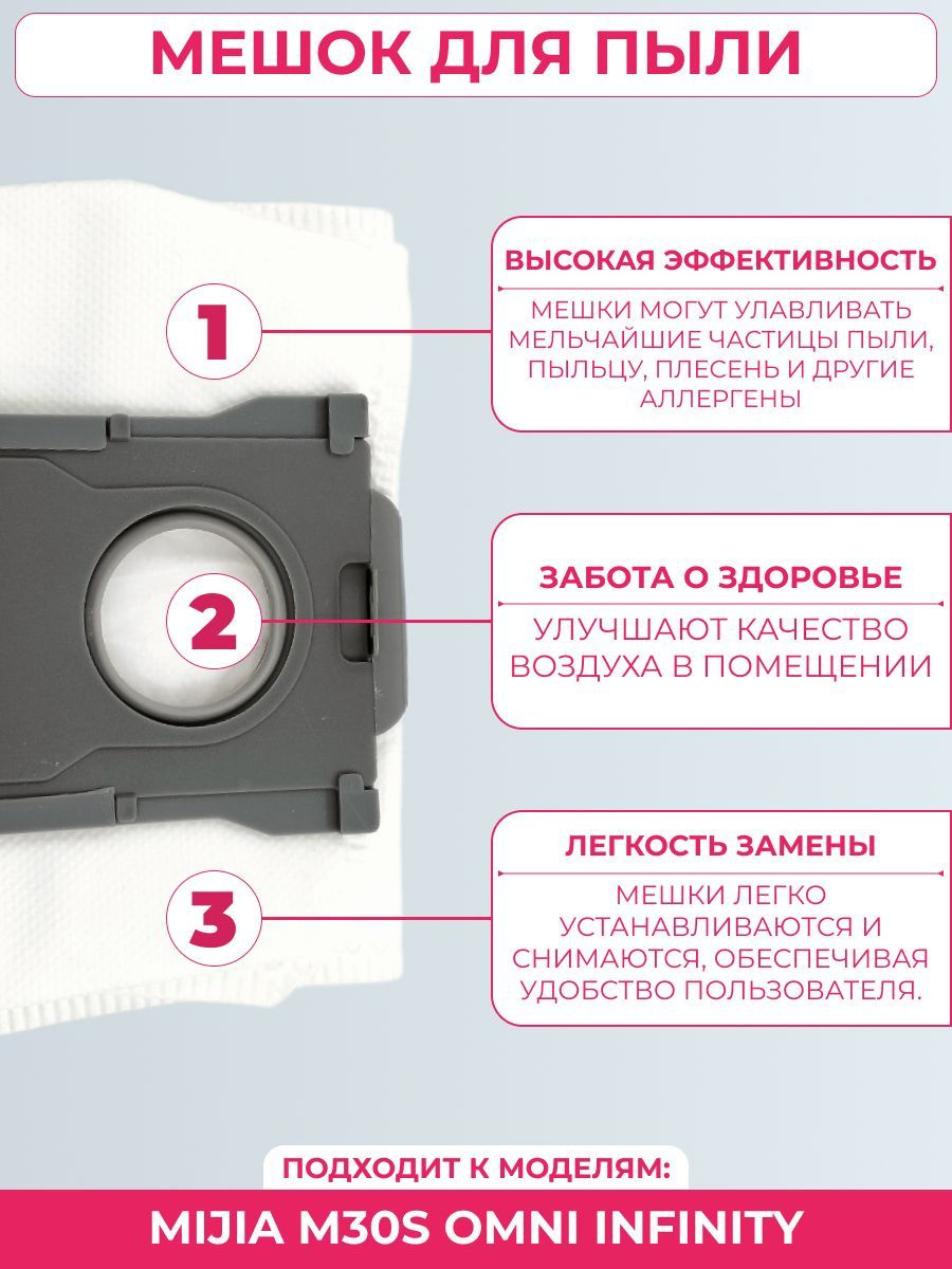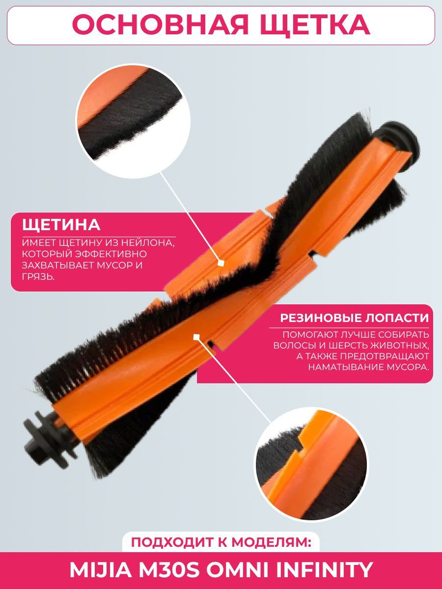 Салфетка-микрофибра 4 шт., HEPA-фильтр 2 шт., Боковая щетка 2 шт., Мешки для сбора пыли 4 шт., Основная щетка.