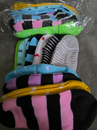 Носки тоненькие, синтетика, расцветка вселенская, но из 20 заявленных пар оказалось 18. неприятненько, ждала больше месяца , два раза доставка переносилась в итоге на 2 пары меньше.
