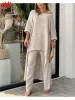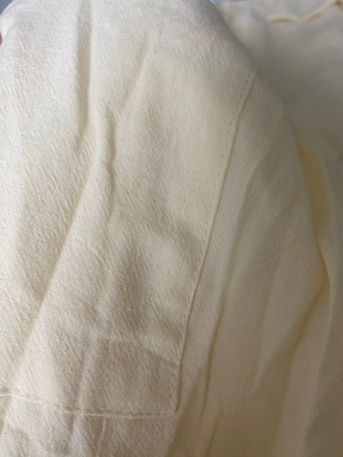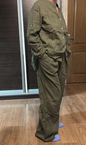 Ужасный костюм. Никакого хлопка и льна нет абсолютно!!! Молочного цвета ткань (чистая синтетика, жёсткая, к телу ОЧЕНЬ неприятная) прошита БЕЛЫМИ нитками. Строчки неровные, нитки торчат. Полное несоответствие реального изделия и фото продавца!!! На брюках нет разрезов. Ещё раз повторю - ткань не струится, стоит колом! Даже не знаю, куда это ЧУДО...  Читать полностью