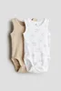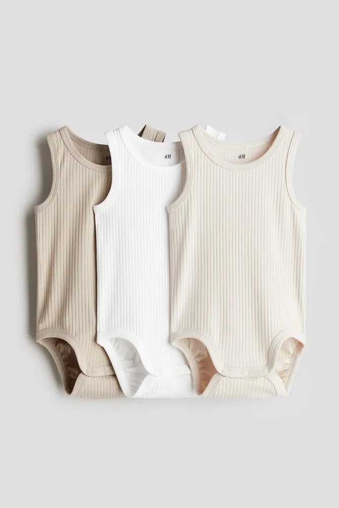Набор из трех предметов. Боди без рукавов из сверхмягкого хлопкового трикотажа. Застежки-кнопки между ножек и присборенный шов вокруг проймы для ног для дополнительного комфорта и лучшей посадки поверх подгузника.