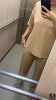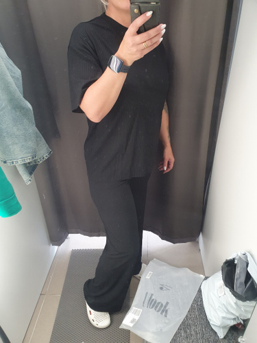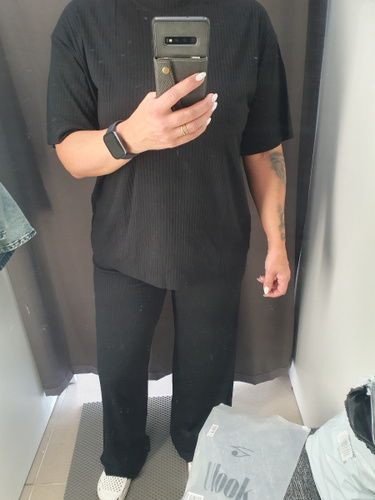 Шикарный костюм. Наконец я нашла именно то что хотела, мягкая ткань и футболка не как на младенца а реально оверсайз, в носке комфортно, единственное штаны пока носить не могу после операции, но кастюм повторюсь просто шикарный. Буду заказывать ещё один в зелёном цвете. Он удобен и для дома и на выход на прогулку. Советую брать не глядя.