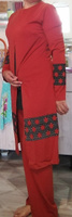 Соседке комплект понравился. Она довольна. Брюки подошли тоже, не нужно укорачивать. Все в норме.