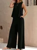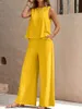 Женский костюм из двух частей: майка с круглым вырезом и широкие брюки.