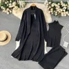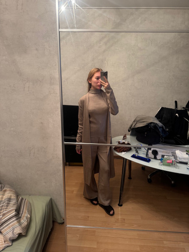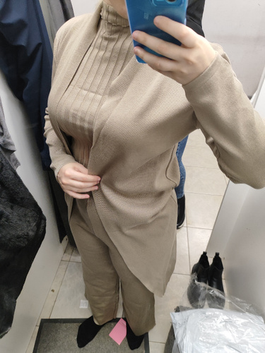 Очень удобно, комфортно, материал очень приятный. Отлично для весны где-то +15-18 (но я мерзлявый человек, вместо кардигана могу надеть пальто). Единственный минус - коротковаты штаны, хотелось бы где-то на 3см подлиннее (но это индивидуально)