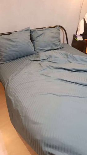 Сатин-страйп — это разновидность ткани сатин, сделанная из 100% хлопка, где чередуются матовые и блестящие полосы. Простыми словами: это прочная, дышащая и шелковистая ткань, которая выглядит дорого и стильно, как в дорогих отелях. Такой материал называют «люкс» среди хлопковых тканей.