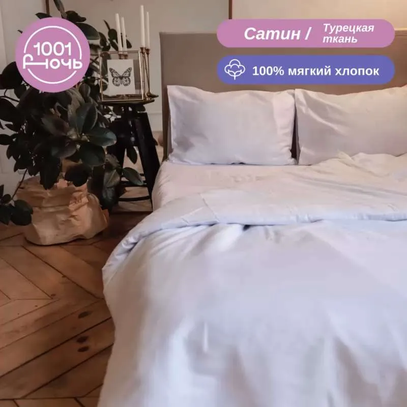Комплект «1001 ночь» из нежного сатина! Наше постельное бельё изготовлено из 100% натурального хлопка, что делает его мягким и приятным на ощупь. Мы используем только высококачественные турецкие ткани, чтобы обеспечить вам комфортный сон.