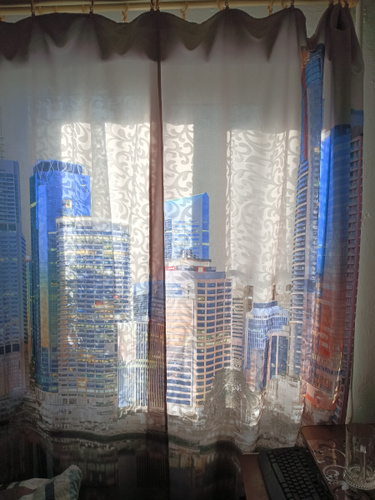 Шикарные шторы!) Меняют интенсивность красок в зависимости от освещённости со стороны улицы. Смотрятся классно,современно!