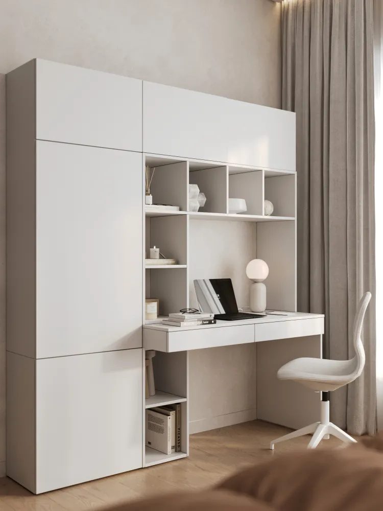Распашные дверцы шкафа с механизмом Push To Open. Сделано из высококачественного австрийского ЛДСП с классом безопасности E0 и противоударной кромкой.