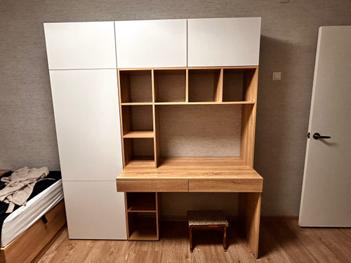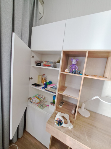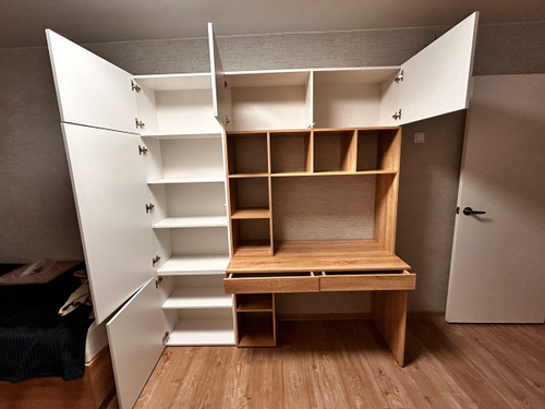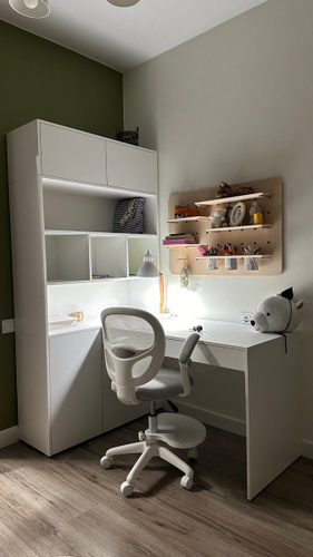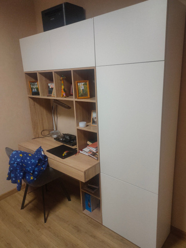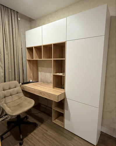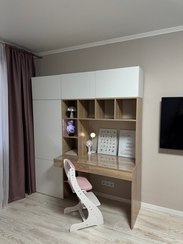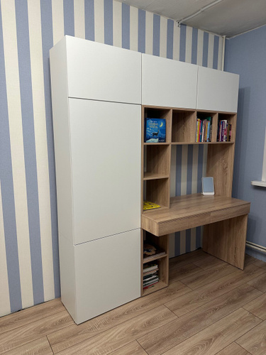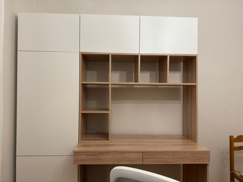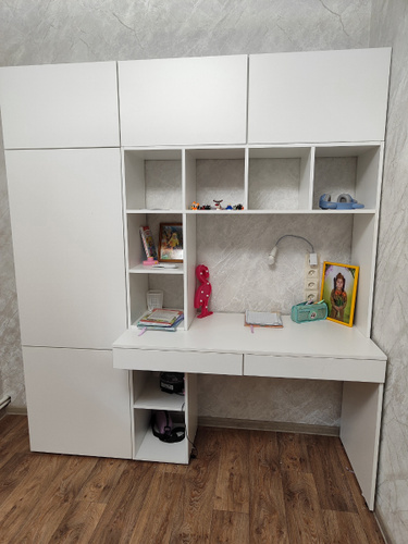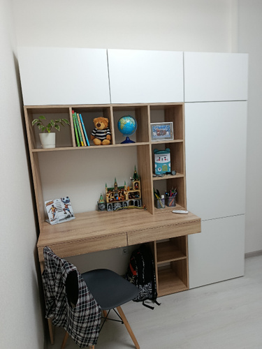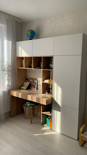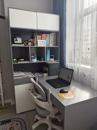Наш письменный стол отлично подойдет как для школьника по учебе так и для взрослого человека руководителя. Его легко вписать в детскую, кабинет, гостиную. Стол письменный, имеет большую столешницу, а так же надстройку в виде шкафа с полками для хранения книг, игрушек, учебников. Можно разместить ноутбук, моноблок и прочие компьютеры.