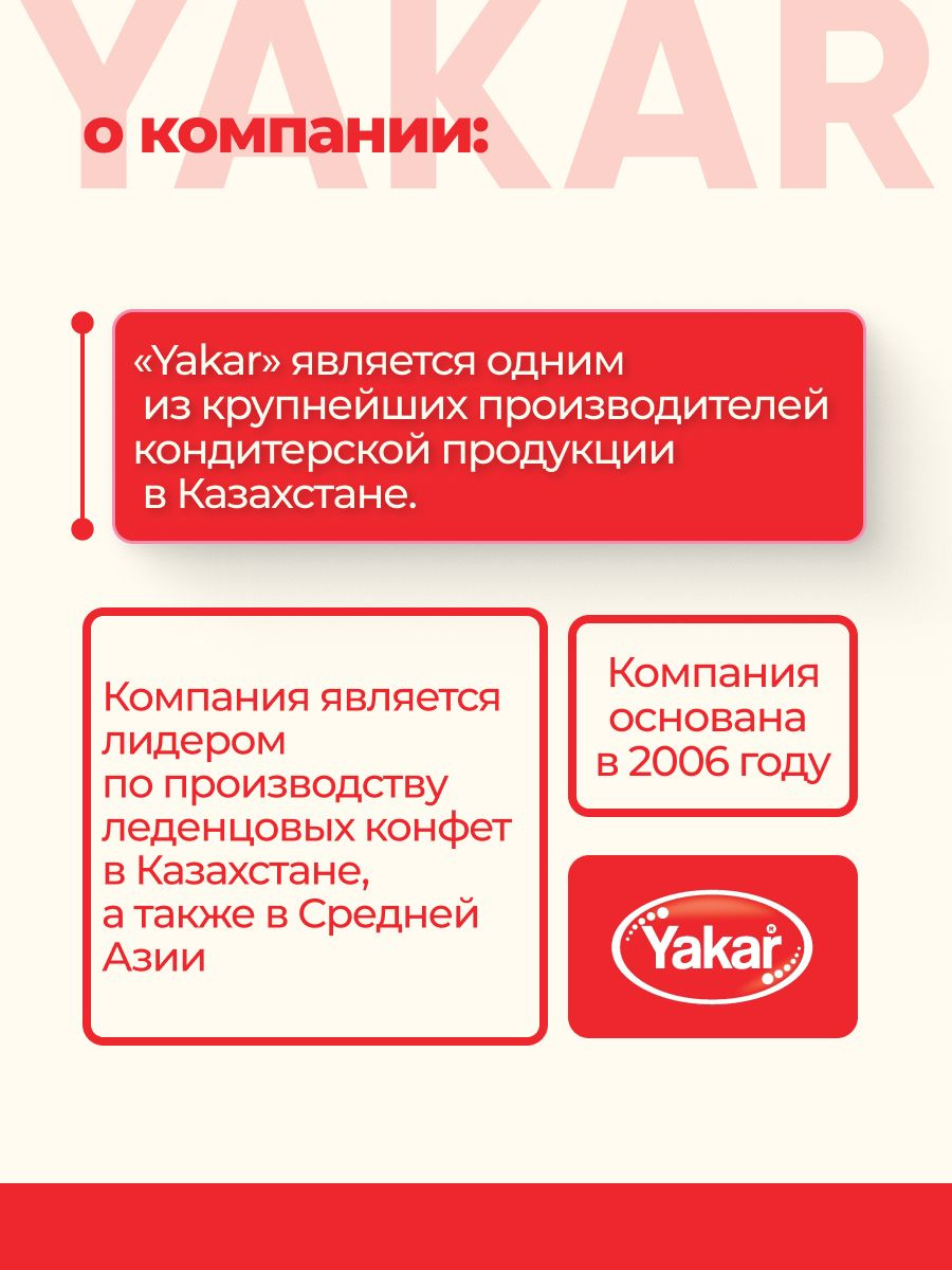 С 2006 года Yakar уверенно удерживает позицию одного из крупнейших производителей кондитерской продукции в Казахстане.