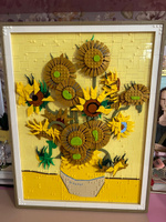 Конструктор LEGO Vincent van Gogh – Sunflowers создан в сотрудничестве с Музеем Ван Гога в Амстердаме. Набор «Подсолнухи» точно воспроизводит знаменитую картину 1889 года, превращая ее в объемную мозаику из кубиков. Яркие желтые, оранжевые и коричневые оттенки деталей передают насыщенную палитру оригинала, особая текстурированная плитка имитирует мазки кисти. Собирая этот набор, можно почувствовать себя художником, «рисуя» кубиками — положение лепестков цветов можно менять Готовую модель можно повесить на стену, как картину, используя встроенную подвесную систему.