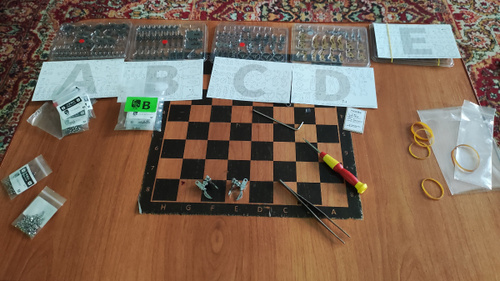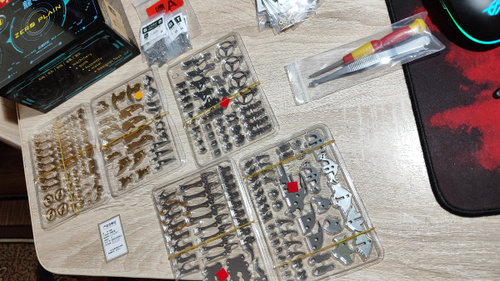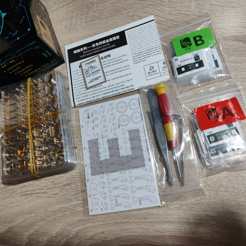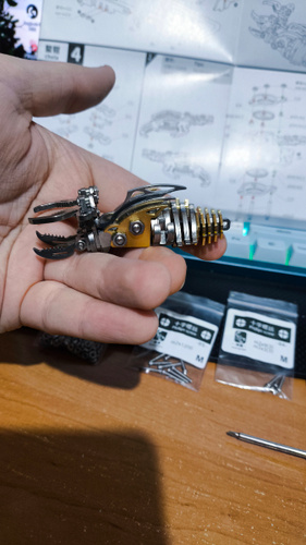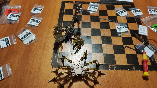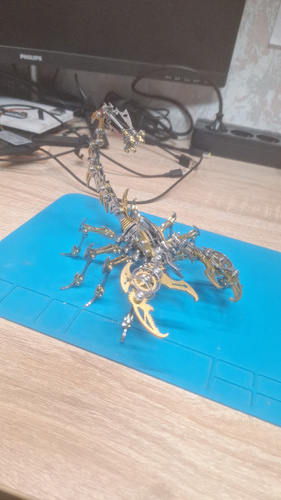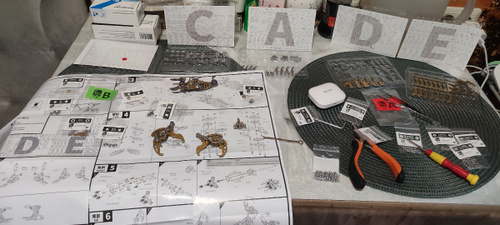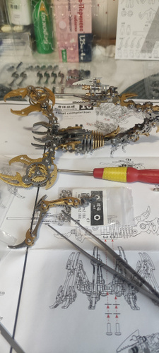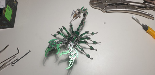 Несколько часов и у меня на столе стоит киборг скорпион. В комплекте есть ключи пинцет и маленькая отвёртка. Осталось немного крепежа