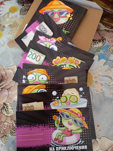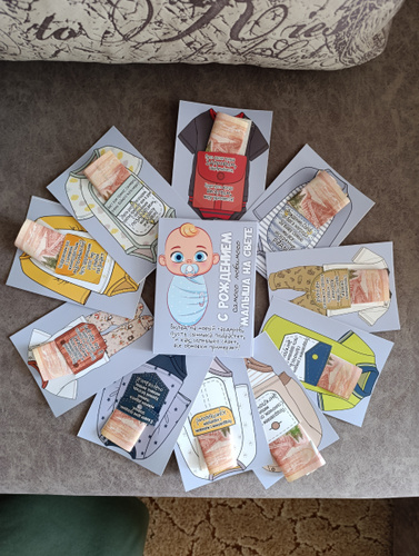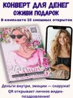 10 поздравительных открыток с прорезями для денег в подарочном конверте