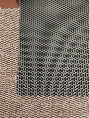 Очень удобный.Легко вытряхивается уличная грязь и шерсть.Единственное-было написано,что кошки не трогают коврик.Моим наоборот,очень понравился в качестве когтедралки,хотя обычная висит