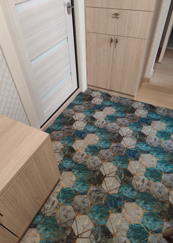 Коврик придверный вырезной DIGITAL PRINT (16) влаговпитывающий 60х120 см соты Куб сине-зеленый  #1