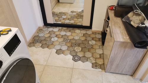 Второй по счету коврик от бренда. Первый покупался себе,в другой расцветке(брусчатка),очень нравится,из всех что были до этого от других брендов данный оказался лучшим. Поэтому когда встал вопрос о переезде дочери на самостоятельную жизнь в другую квартиру на тему подбора коврика и сомнений не возникло куда обращаться с поиском. Взяли ей в этом варианте,более подходящим по цвету в ее квартиру. Ну реально классный и удобный в использовании. Выбор принтов невероятен по количеству. Советую к приобретению! Единственный минус-доставка не айс,но это для данной категории товаров не так уж существенно,главное доехал не коцанным,а дранная упаковка…ну что ж,некритично,все равно под обувь пойдет служить.Посему звезду не снимаю,качество достойное и это главное. Рекомендую с удовольствием
