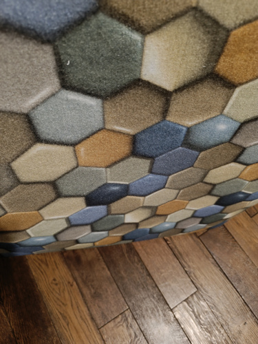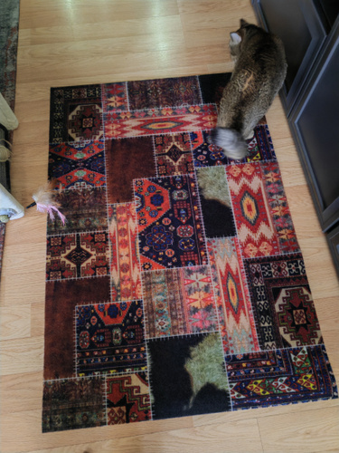Отличное ковровое покрытие, в меру яркий рисунок, выглядит красиво. Хорошо подрезался по месту, вписался в интерьер. Спасибо продавцу, качественный товар